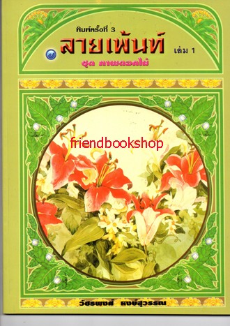 ลายเพ้นท์ เล่ม 1 เป็นหนังสือรวมภาพลายเส้นดอกไม้พันธุ์ต่างๆ ซึ่งเป็นผลงานหนังสือศิลปะอีกเล่มหนึ่ง ที่ทางสำนักพิมพ์วาดศิลป์ได้สร้างสรรค์ขึ้นเพื่อท่านผู้สนใจ ลวดลายต่างๆ ในหนังสือเล่มนี้ได้รังสรรค์จากธรรมชาติ และจินตนาการด้วยความวิจิตร การจัดวางองค์ประกอบแต่ละช่อ แต่ละกิ่งใบ แต่ละดอกให้สอดคล้องลงตัว ซึ่งท่านผู้สนใจสามารถนำมาประยุกต์ใช้กับงานด้านต่างๆ ได้ทันที่ เช่น เพ้นท์ลายกระจก เพ้นท์ลายบาติก หรือลายปักทั่วๆ ไป เป็นต้น