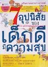 จุดเด่น : เด็กได้เรียนรู้อุปนิสัยที่ดีทั้ง 7 แบบจากเรื่องราวที่สนุดเข้าใจง่าย ผู้เขียนเคยมีผลงานจาก 7 อุปนิสัยให้วัยรุ่นเป็นเลิศ (สนพ.อินสปายร์ ในเครือนานมีบุ๊คส์)ซึ่งจัดพิมพ์กว่า 3ล้านเล่มทั่วโลก และแปลถึง 15 ภาษา ในเล่มมีเนื้อหานิทานสำหรับเด็ก และเนื้อหาสำหรับผู้ใหญ่ คือมุมผู้ปกครอง ที่แนะนำวิธีการเลี้ยงลูกไว้อย่างน่าสนใจท้ายเรื่องของนิทานทั้ง 7 เรื่องมีคำถามให้เด็กได้คิดและมีส่วนร่วม ผู้เขียนใช้ภาษาที่เข้าใจง่ายอย่างคนที่เข้าใจธรรมชาติของเด็ก เพราะมีประสบการณ์ในการเลี้ยงลูกมาด้วยตนเอง