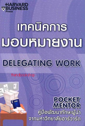 บนโต๊ะทำงานของคุณมักจะมีงานกองสุมเต็มโต๊ะอยู่เสมอหรือไม่? คุณต้องทำงานล่วงเวลาเป็นประจำ เพราะงานนี้เป็นที่มีคุณเพียงคนเดียวเท่านั้นที่ทำได้ใช่ไหม่? หากคำตอบของคุณคือใช่! คุณจำเป็นต้องมอบหมายงานบางส่วนของคุณ ให้เพื่อนร่วมงานรับช่วงต่อบ้างแล้ว... นี่คือตัวช่วยสำคัญที่จะทำให้คุณสามารถกำหนดได้ว่า งานอะไรที่คุณควรมอบหมายให้ใครเป็นผู้รับผิดชอบแทน พร้อมทั้งเข้าใจวิธีการมอบหมายงานและการตรวจสอบความคืบหน้าของงาน ตลอดจนสามารถรับมือกับปัญหาต่างๆ ที่เกิดขึ้นกับงานที่คุณมอบหมายไปแล้วได้อย่างมีประสิทธิผล ยิ่งไปกว่านั้น ในเล่มยังได้รวบรวมแบบทดสอบตนเอง และตัวอย่างจากชีวิตจริง ที่เอื้อต่อการฝึกฝนและการแก้ปัญหาเฉพาะหน้า เพื่อเป็นที่พึ่งพาแก่คนทำงานและนักบริหาร ในทุกสถานการณ์ และทุกสถานที่