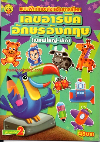 เป็นแบบฝึกทักษะส่งเสริมการเขียน เลขอารบิค อักษรอังกฤษ ทั้งตัวพิมพ์เล็ก และตัวพิมพ์เล็ก สำหรับนักเรียนชั้นอนุบาล
