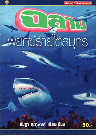 |  Full Size | พาคุณหนูๆ มารู้จักกับ "ปลาฉลาม" พยัคฆ์ร้ายใต้สมุทร มาดูกันว่า "ปลาฉลาม" นั้นมีลักษณะรูปร่างและนิสัยอย่างไร กินอะไรเป็นอาหาร ที่อยู่อาศัยเป็นอย่างไร และมีปลาฉลามกี่ชนิดหรือกี่ประเภทอะไรบ้าง คุณหนูๆ มาหาคำตอบกันได้ในหนังสือเล่มนี้