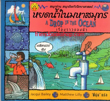 หนังสือเล่มนี้จะพาเด็กๆ ไปสนุกกับสารพัดการทดลองทางวิทยาศาสตร์ โดยเฉพาะเรื่องราวของน้ำ โลกของเราเต็มไปด้วยสิ่งมหัศจรรย์นี้ เราแหวกว่ายมัน ดื่มมัน แม้ร่างกายเราก็มีมันเป็นส่วนประกอบ เด็กๆ จะได้รู้ว่ามันเปลี่ยนจากของเหลวในทะเลไปเป็นก๊าซล่องหนที่ลอยอยู่ในอากาศได้อย่างไร เรื่องราวของการเกิดเมฆ วิธีที่ฝนตกลงมา และเพราะเหตุใด ไม่ว่าเราจะใช้มันมากขนาดไหน มันก็ไม่เคยหมด ถ่ายทอดในรูปแบบการ์ตูนสวยงาม นอกจากได้รับความเพลิดเพลินแล้ว ยังได้รับสาระความรู้ไปพร้อมๆ กันอีกด้วย ราคาปกติ 98.00 บาท ส่วนลด 14.75 บาท ราคาพิเศษ 83.25 บาท สถานะหนังสือ พร้อมส่ง Full Size หนังสือเล่มนี้จะพาเด็กๆ ไปสนุกกับสารพัดการทดลองทางวิทยาศาสตร์ โดยเฉพาะเรื่องราวของน้ำ โลกของเราเต็มไปด้วยสิ่งมหัศจรรย์นี้ เราแหวกว่ายมัน ดื่มมัน แม้ร่างกายเราก็มีมันเป็นส่วนประกอบ เด็กๆ จะได้รู้ว่ามันเปลี่ยนจากของเหลวในทะเลไปเป็นก๊าซล่องหนที่ลอยอยู่ในอากาศได้อย่างไร เรื่องราวของการเกิดเมฆ วิธีที่ฝนตกลงมา และเพราะเหตุใด ไม่ว่าเราจะใช้มันมากขนาดไหน มันก็ไม่เคยหมด ถ่ายทอดในรูปแบบการ์ตูนสวยงาม นอกจากได้รับความเพลิดเพลินแล้ว ยัง