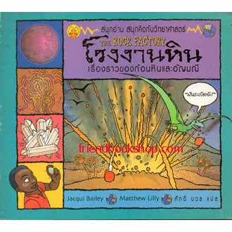 ลึกลงไปใต้พื้นโลก โรงงานหินกำลังคลุกเคล้าส่วนผสมทำการหลอมละลาย บีบอัด กวนให้เข้ากัน อบและผลิตก้อนหินกับอัญมณี ภายในเล่มน้องๆ จะได้เรียนรู้เรื่องราวของก้อนหินที่ก่อตัวอยู่ลึกลงไปใต้พื้นโลก ก่อนจะโผล่ขึ้นมาอยู่ด้านบนในอีกหลายๆ พันล้านปีต่อมา เนื้อหาเข้าใจง่าย พร้อมภาพประกอบสี่สีชัดเจนตลอดทั้งเล่มที่จะช่วยสร้างความสนุกสนานและเพลิดเพลินในการเรียนรู้ของเด็กๆ ได้เป็นอย่างดี