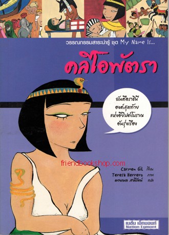 เนื้อหาโดยย่อ : วรรณกรรมสาระน่ารู้ ชุด My Name Is... คลีโอพัตรา "ชีวิตของฉันเข้มข้นมากในทุกแง่มุม ฉันกลายเป็นราชินีแก่งอียิปต์เมื่ออายุ 18 ปี และต้องต่อสู้เพื่อประเทศของฉันอย่างไม่หยุดหย่อน ฉันขอบอกเธอไว้ก่อนเลยว่าฉันไม่ใช่ผู้หญิงเจ้าเล่ห์และไม่ใช่จอมบงการอย่างที่บางคนวาดภาพเอาไว้และเพื่อเป็นการปกป้องตัวเองจากเรื่องโกหกทั้งหลายแหล่ ฉันว่าถึงเวลาแล้วล่ะที่ฉันจะเล่าเรื่องราวของฉันให้เธอฟังเอง"
